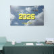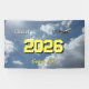 Flugzeug fliegt über den Wolken mit dem Slogan "Klass von 2026 fliegt weit!" Jahr und Slogan sind anpassbar.