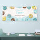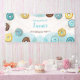 Banner "Welcome" zum 1. Geburtstag, zeigt eine schöne Aquarellillustrierung eines süßen und köstlichen Donuts.