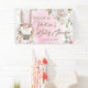 Banner für die Babydusche mit einem hübschen, duftenden Kaninchen mit hübschen Blume in ihren Haaren auf einem wunderschönen Vintagen Hintergrund der Blume. Dieses niedliche Baby-Duschbanner lässt sich leicht an den von Ihnen gewünschten Text anpassen.