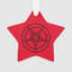 Baphomet Pentagram Ornament. Dieses rote, sternförmige Weihnachtsschmuck mit einem Baphomet-Pentagramm ist ideal, um den Weihnachts- oder Winterurlaubsbaum zu erfrischen! Geben Sie als Geschenk an den Goten, Horror-Fan, Satanist, okkultistisch oder Hexe in Ihrem Leben als Feiertagsgeschenk. Das Ornament ist sternförmig und auf beiden Seiten rot, das Baphomet Pentagram schwarz auf jeder Seite.