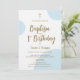 Baptism and First Birthday with Cross Blue Gold Einladung