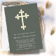 Individuell gestaltbare Taufeinladung mit einem goldenen Kreuz auf einem waldgrünen Hintergrund.