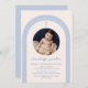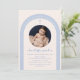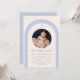 Moderner, geschlechtsneutraler, blauer Boho-Boharsch mit einfacher Cross-Taufen-Einladung für Junge und Mädchen. Um das Foto zu ändern, wählen Sie Farben und Schriftart dieses Design weiter bearbeiten, um zusätzliche Optionen für die Anpassung zu öffnen.
