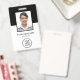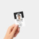 Einfaches und modernes Schwarzweiß Foto ID Abzeichen. Passen Sie die Vorderseite mit Ihrem Logo, dem Namen des Fotos der Mitarbeiter und dem Titel Ihres Jobs an. Fügen Sie auf der Rückseite Ihren Firmennamen und andere Informationen und einen Bar-Code (oder löschen) hinzu.