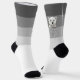 Der graue Schatten zu weißen Socken aus der Serie "Bär, der über die Wand schaut". Drei niedliche Bären auf den Socken mit Blick auf eine kleine Mauer. Vier Farben auf dem Kalb und ein Single auf dem Fuß. Niedlich, ungewöhnlich, bunt. Erhältlich in verschiedenen Varianten.