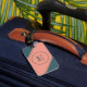 Dieses schicke Gepäckanhänger weist einen zentrierten geometrischen Doppelkreis in aquamariner Form auf einem hellen Lachsboden auf. Personalisieren Sie das Textfeld mit einem Anfangsbuchstaben, oder klicken Sie auf Anpassen, um eine Schriftfarbe, -größe und -stil auszuwählen, die Sie bevorzugen.