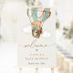Fügen Sie Ihrer Babydusche mit diesen stilvollen und unvergesslichen Party eine persönliche Touch hinzu! Das Design bietet Teddybär in grünem Heißluftballon auf beigem Hintergrund.