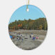 Dieses runde Porzellanschmuck feiert die natürliche Landbrücke zwischen Bar Harbour und Bar Island in Maine. Die Brücke ist sichtbar, wenn die Flut zurückgeht und die Besucher die unbewohnte Insel zu Fuß oder mit dem Auto erkunden können. Besiege die Flut in 90 Minuten oder die Brücke ist bis zur nächsten Ebbe gegangen. An der Vorderseite erscheint ein Bild der benutzten Brücke; die Standortinformationen und der Wunsch "Frohe Weihnachten" sind auf der Rückseite. Wenn Sie dieses Design auf einem anderen Ornament oder Gegenstand, kontaktieren Sie mich durch Zazzle. Ich helfe Ihnen gerne und woll Ihnen nicht, den Text auf einer anderen Form zu verlieren.