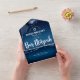 Seien Sie stolz, freuen Sie sich und präsentieren Sie diesen Meilenstein Ihres Lieblings-Bar Mitzvah! Versenden Sie diese coole, einzigartige, moderne, maßgeschneiderte All-in-One-Einladung für eine Veranstaltung, an die Sie sich erinnern können. Die Typografie der weißen Schrift und der Star of David überlagern einen tiefmarineblau ombre Hintergrund mit Stahlblau-Age mit silbernen Imitaten Akzente. Dieses All-in-One-Produkt ist eine einzigartige Kombination aus einer individuellen Einladung und einer leicht abzureißenden perforierten UAWG-Postkarte. Personalisieren Sie den benutzerdefinierten Text mit dem Namen Ihrer Bar Mitzvah, dem hebräischen Namen, dem Datum und den Informationen zum Veranstaltungsort. Garantiert, um seinem besondere Anlass stilvollen Spaß zu verleihen! Geben Sie einfach den Namen Ihres Sohnes, den hebräischen Namen, das Datum, den Tempelort und andere Informationen ein, und Sie können diese Bar Mitzvah-Einladung ganz individuell gestalten. Bitte schicken Sie mir eine Nachricht mit Fragen oder Wünschen.