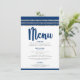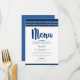 Bar Mitzvah Modern Navy Blue Silver Tallit Script Menükarte