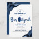 Bar Mitzvah Modern Simple Navy Blue Agate Script Einladung