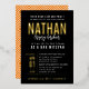 BAR MITZVAH Moderner, fettfreier Block schwarz ora Folieneinladung