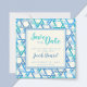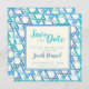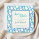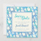Diese moderne, helle und frische "rett-the-date"-Karte eignet sich perfekt für ein Bar Mitzvah-Fest. Es zeigt ein aquamarines blaues Muster des jüdischen Wahrzeichens des David und einen Schriftart im Aquarellstil. Alle Textsätze können angepasst werden.