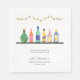 Die Servietten des Bar sind mit Wasserfarbenlikören und Weinflaschen versehen, die auf einem Regal mit hängenden Streichellichtern oben angebracht sind. Es gibt Platz für einen besonderen Hinweis für Ihre Gäste, Namen und sogar Datum. (Originalkunst von Shelley Winters Design)