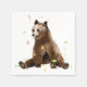 niedliche Digitalbärenskizze mit farbenfrohen Blätter, die vorbei fliegen