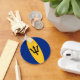 Die Fahne von Barbados ist dem Kreisfob dieses Schlüsselanhängers geschickt angepasst. Eine praktische Erinnerung des Barbadischen Erbes.