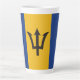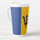 Die blaue und goldene Barbadische Fahne füllt den gesamten druckbaren Bereich dieser großen, latten Tasse. Genießen Sie die Flagge von Barbados mit Ihrer Latte. Gutes Geschenk für Ihren Lieblings-Bajan.