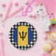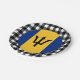Teller: Rustikale Barbados Party Teller mit Barbados-Fahne umgeben von schwarz-weißem Büffel karierte Muster - Liebe mein Land, festliche Dekoration, nationale Patrioten / Sportfans