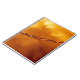 Dreamähnliches Foto aus rostfreiem Stacheldraht auf einem rosten und gelben Hintergrund.