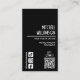Stilvolle schwarze Visitenkarten für Friseure und Friseure mit Ihrem Namen vorne und mehr Details auf der Rückseite mit Ihrer Social Media Info, Adresse, Telefonnummer und einem QR Code. Personalisieren Sie diese Karten so, dass sie einzigartig für Sie sind.