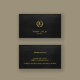 Luxury simple business card for a barber hairstylist in faux gold on black elegant leather look background. Please note that there is not real leather, the leather look is obtained by printing..