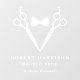 Einfache maskulin-weiße Fensterverkleidung für Friseure und Friseurläden mit moderner minimaler Typografie und abstrakter Abbildung einer Kiste und Schere, die die Lapels einer Jacke bilden. Personalisieren Sie mit Ihrem Namen, dem Namen des Shops und ob Sie zu Fuß ins Hotel gehen.