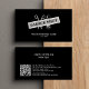 Einfache moderne, schwarz-grau-weiße Friseur-Logo und Firmenname personalisierte Friseure / Männersalon Promotion Maskuline Visitenkarte mit automatisch generiertem QR-Code für Ihre Website, Service-Menü-Seite, oder mehr Informationen.