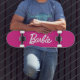 Das ikonische Barbie-Logo auf einem Skateboarddeck.