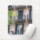 Foto eines Gebäude in Barcelona Spanien mit eisernen Balkonen, Fensterläden, mit römischer kostümierter Frauen im Jugendstil dekoriert.