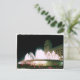 Schicken Sie jemandem eine Nachricht auf dieser Postkarte mit einem Nachtschuss des Springbrunnens in der Placa de Catalunya in Barcelona, Spanien.