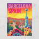 Barcelona Gaudi Sunset Retro Postkarte