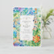 Die Hochzeitssuite lädt Sie zu einem unvergleichlichen Fest ein. Sie ist lebendig illustriert in einem Stil, der an die berühmten Mosaike von Antoni Gaudí erinnert, insbesondere an die Mosaike des Parks Güell in Barcelona. Die Vorderseite ist mit einer verspielten Mosaikeidechse (oder Salamander) und fantastischen architektonischen Elementen sowie einer hellen, orangefarbenen und gelben Blume ausgestattet, die alle Set mit einem atemberaubenden Hintergrund farbenfroher, unregelmäßiger Kacheln in brillanten Blau-, Grün-, lila, Orange- und Gelbtönen verziert. Auf der Rückseite, für "The Finer Details", wird dieses Mosaik-Thema fortgesetzt, das die legendäre Eidechse mit fröhlichen orangen und gelben stilisierten Blume und einzigartigen kreisförmigen Motiven hervorhebt. Das gesamte Design wird in einer schönen Aquarelltechnik dargestellt, die den Mosaikmustern eine weiche, künstlerische und leuchtende Qualität verleiht. Diese Einladung eignet sich perfekt für eine Hochzeit in Urlaubsort in Barcelona, eine Kunstfeier oder für Paare, die kühn Farben, einen einzigartigen künstlerischen Ausdruck und den charmanten Charme der katalanischen Moderne lieben.