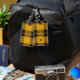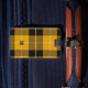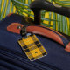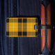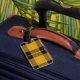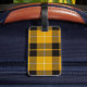 Luggage Tag with a bright yellow, black and white Scottish tartan with personalized monogram. Traditional Clan Barclay Dress Light Weight modern plaid pattern from 1842.
