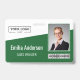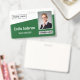 Personalisieren Sie dieses grüne, kundenspezifische Mitarbeitername und Foto-Abzeichen einfach mit Ihrem Firmenlogo und qr-Code oder Strichcode. Erhältlich mit verschiedenen Hintergrundfarben und Anbaugeräten. Keine Mindestbestellmenge.