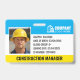 Konstruktions-ID-Abzeichen mit vollständig anpassbarem Text und QR-Code. Foto-Abzeichen mit Markenzeichen geben zusätzliche Sicherheit auf einer Baustelle oder als Kennzeichnung auf einer Messe. Dieses moderne Template enthält Ihr Firmenlogo, Namen, Mitarbeiterdaten, Strichcode und Kontaktdaten. Der gesamte Text kann so angepasst werden, dass Sie die gewollt Informationen einschließen können. Ideal für ein breites Spektrum von Unternehmen, darunter Wohnbau und kommerzielle Bauwirtschaft, Management, Generalunternehmer, Gebäude-Auftragsvergabe und Konstruktionsbau. Druckfarben: blau, schwarz, gelb und weiß. Blau ist eine beliebte Farbe für Bauunternehmen, da es ein Gefühl der Zuverlässigkeit und des Vertrauens gibt. Bestellen Sie die Kollektion für populärere Produktideen und Produkte zum Verkauf online, die für die Bauindustrie konzipiert sind.