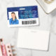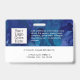 Personalisieren Sie dieses horizontale ID-Abzeichen mit einem Mitarbeiter-Foto, Namen, Titel, Krankenhaus-/Firmennamen, Standort, Mitarbeiter-ID und Strichcode. Im Hintergrund sind blaue Aquarellfarben zu sehen. Auf der Rückseite des Abzeichens finden Sie Ihr Logo und zusätzliche Textfelder für Rückgabeinformationen oder andere Details. Ideal für medizinische Einrichtungen oder Firmen, die eine Sicherheitsidentifizierung benötigen.