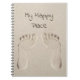 Bare Fußspuren in Strand und "my happy place" Text. Text ist bearbeitbar.