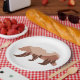 Diese Teller haben eine Silhouette eines Bären in einem Waldgebiet. Teil der Beat Mountain Collection