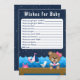 Diese niedlichen und lustigen Wünsche für die Babykarte sind mit einem nautischen Seemannsbär auf einem Holzdeck mit Seemöle und Krabbe ausgestattet. Im Hintergrund ist ein niedlich rosa Vogel auf einem Segelboot, Meereswellen und ein marineblauer Sternenhimmel. Der Text verbindet fett- und serifenlose Schriftart für ein stilvolles und modernes Aussehen. Das ist ideal für eine Babydusche zum Thema Wassersport.