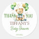 Teddy Bär warten früh sage grün und braun golden Sprinklen Baby Dusche Template danke Ihnen für Aufkleber, niedliche Teddy Bären Kleider mit Shirt und eine Bugs Krawatte danke Ihnen Aufkleber für Baby Dusche Favoriten
