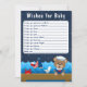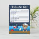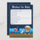 Diese niedlichen und lustigen Wünsche für die Babykarte sind mit einem nautischen Segelbootbär auf einem Holzdeck mit Seegras und Krabbe ausgestattet. Im Hintergrund ist ein niedlicher roter Vogel auf einem Segelboot, Meereswellen und ein marineblauer Sternenhimmel. Der Text verbindet fett- und serifenlose Schriftart für ein stilvolles und modernes Aussehen. Das ist ideal für eine Babydusche zum Thema Wassersport.