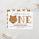 Unser kleiner Bär verwandelt eine erste Baby-Geburtstagseinladung auf Kraftpapier. Diese Einladung hat ein braunes Farbschema mit dem Wort "Eins" in großen Buchstaben mit einer Bärenbild-Abbildung als erster Buchstabe des Wortes. Einfach anpassen, diese Einladung, fügen Sie sie in Ihren Warenkorb, und glücklicher Geburtstag zu Ihrem wunderbaren Baby! Bear One Animal First Birthday Einladung Holidayday Design | ©Melissa Patton - Künstler/Illustrator