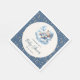 Feiern Sie die Ankunft Ihres Kleinen mit dieser hübschen Papierserviette mit einem Aquarellbaby, das friedlich auf einer Wolke schläft. Die niedliche Abbildung ist in einem runden Rahmen eingebettet, umgeben von einem zauberhaften Muster goldener Sterne vor einem ruhigen, blauen Hintergrund. Ideal, um Ihrem Baby-Duschbad-Party eine Touch Whimsy hinzuzufügen