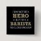 Ich bin vielleicht kein Held, aber ich bin eine Barista, die so nah genug humorvolle Wortkunst in Sans-Serif und doodle Cross-Luch-Schriftart, die in weiß und goldgelb mit zwei bedrückten Akzent Sterne schrieb.