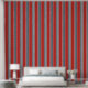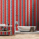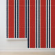 A classic double rugby stripe wallpaper in a rich preppy palette of barn red, smoke blue, navy, chocolate, army green, and khaki. This sporty, tailored stripe works beautifully in family rooms, men’s studies, home offices, game rooms, teen boy spaces, and farmhouse-inspired interiors. The clean rhythm of the stripe gives it a timeless look that feels masculine, polished, and easy to coordinate with solid fabrics and wood tones.