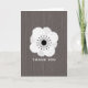 Eine Karte, die eine weiße französische Anemonenkarte auf der Vorderseite auf einem inspirierten Hintergrund aus Barnwood darstellt. Im Inneren ist leer. Diese Karte kann auch in kleinerer Notecardgröße erworben werden. Suchen Sie nach passenden Hochzeitseinladungen und mehr in Jill's Paperie.