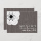 Eine Hochzeit speichert das Datum, an dem eine weiße französische Anemonie-Blume auf einem inspirierten Hintergrund aus Barnwood dargestellt wird. Personalisieren Sie den Text vorne und hinten.