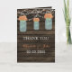 Rustikales Barnwood, dangling Lichter mit Korallen Blume in einem Maurerkirsch Hochzeit Danke Karten. Auch passende Produkte sind erhältlich.