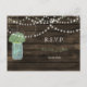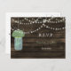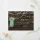 Rustikales Barnwood, dangling Saitenleuchten mit Salbei Blume in einem Mason Glas Hochzeit RSVP Postkarten. Auch passende Produkte sind erhältlich.