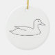 Diese Geflügelthemaverzierung stellt eine Barnyardente dar. Eine Vielzahl der inländischen Enten wird allgemein auf kleinen Bauernhöfen und Gehöften von Nordamerika gefunden. Diese Entenikone kann Pekin Enten, Rouens oder andere Vielzahl darstellen. Diese Verzierung kann wilde Pfützenenten auch darstellen.